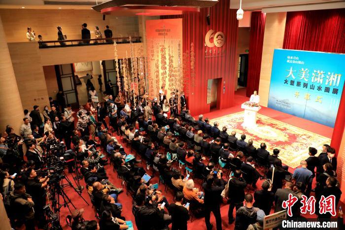 “绿水青山就是金山银山”大美潇湘大型系列山水画展开幕式现场。